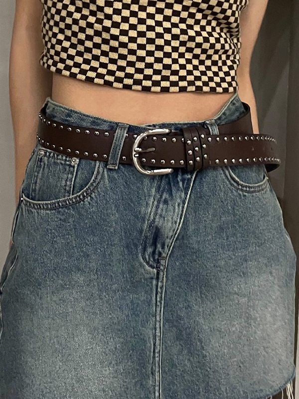 Vintage Eyelet Rivet Decor Wide Buckle Belt