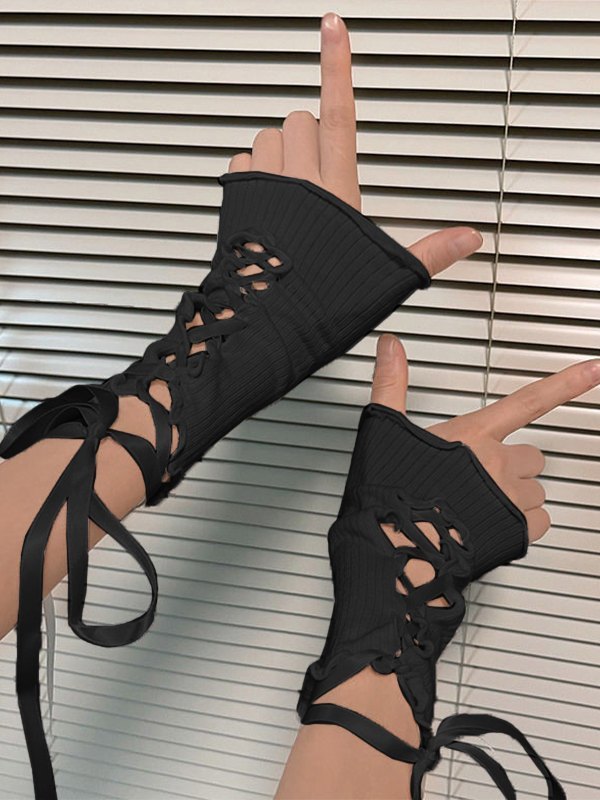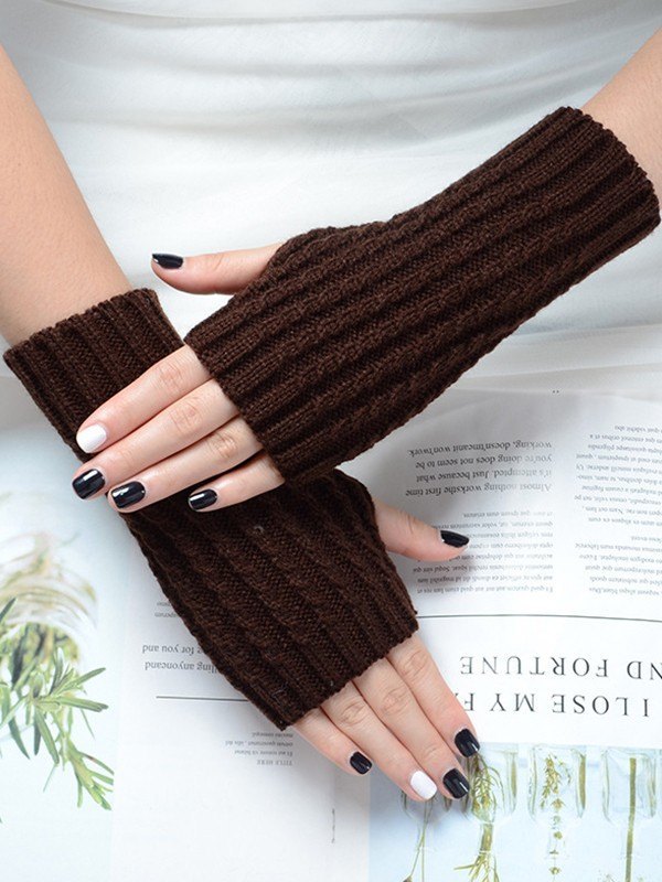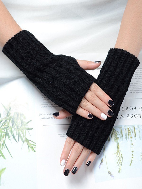 Ribbed Knit Thumbhole Arm Warmer Gloves