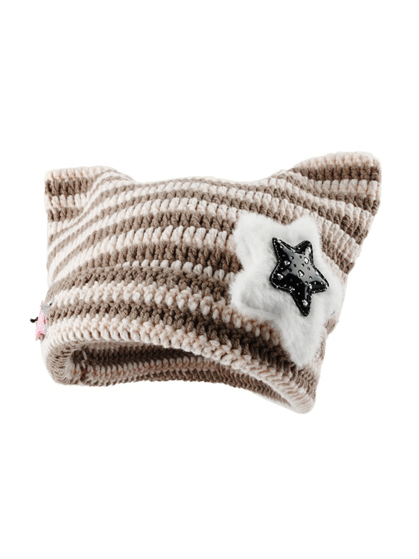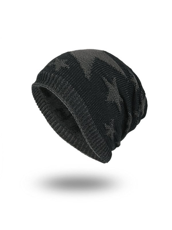 Star Jacquard Warm Fleece Lined Beanie Hat