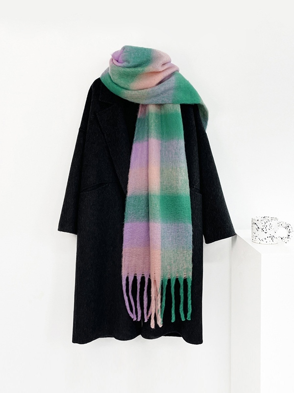 Colorful Checker Fringed Scarf