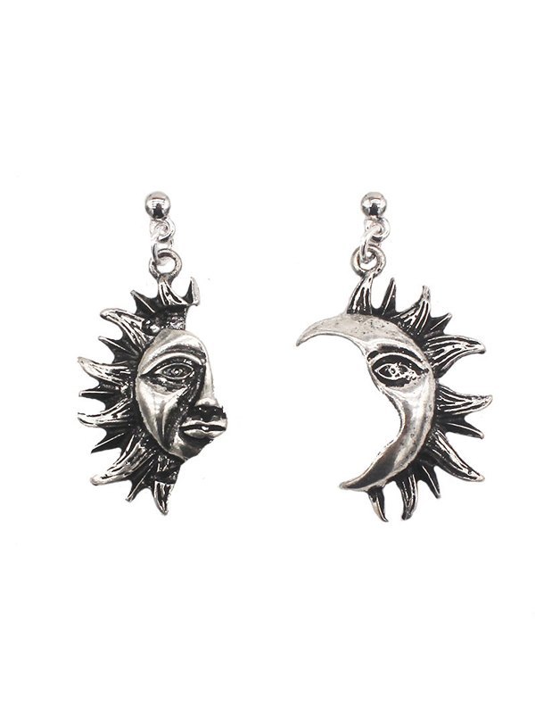 Dark Sun Moon Asymmetrical Earrings