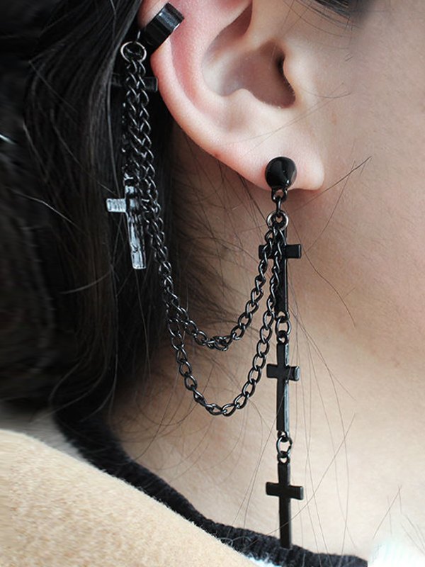 Men’s Punk Chain Embellished Cross Earrings