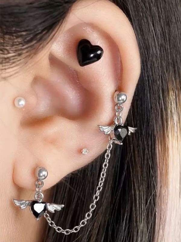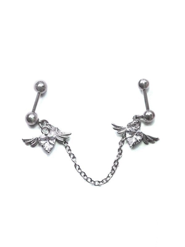 Winged Heart Charm Chain Earrings