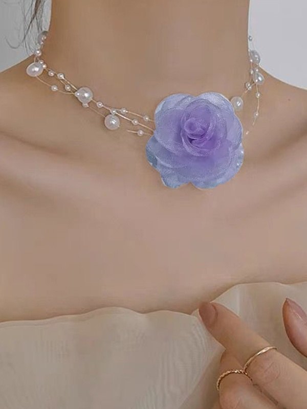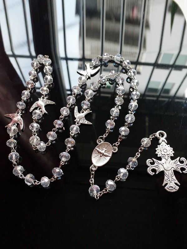 Rhinestone Cross Pendant Faux Pearl Choker Necklace
