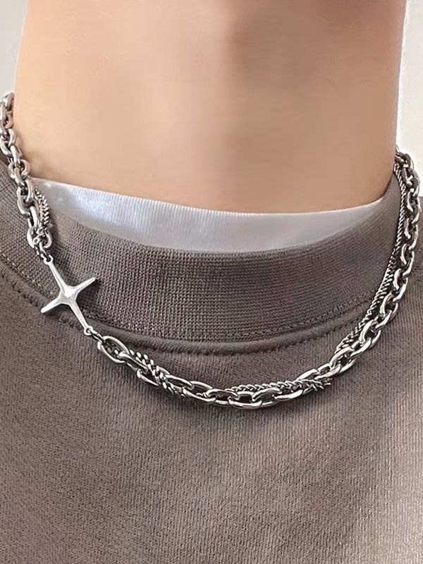 Men’s Layered Geometric Link Chain Necklace