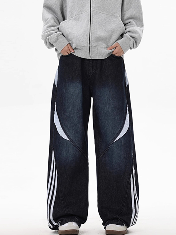 Retro Spliced ??Three Stripes Boyfriend Jeans