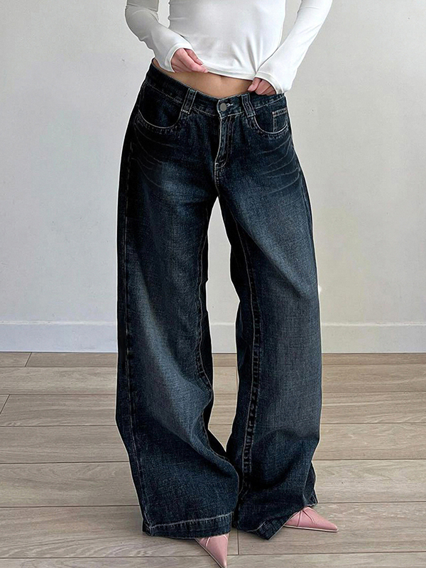 Washed Loose Straight Fit With Slight Flare Loose Jeans