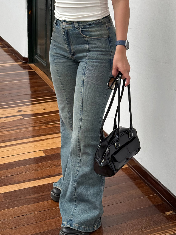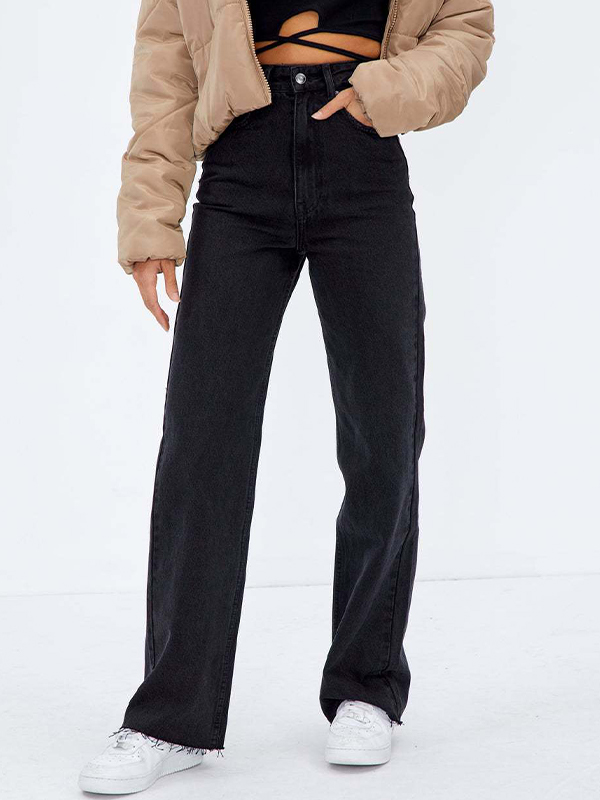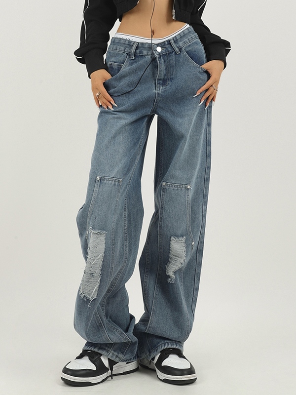 American Retro Washed Cat Whiskers Slightly Raised Loose Jeans