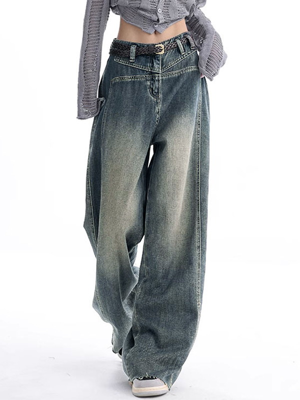 Vintage Yellow Mud Letter Loose Straight Jeans