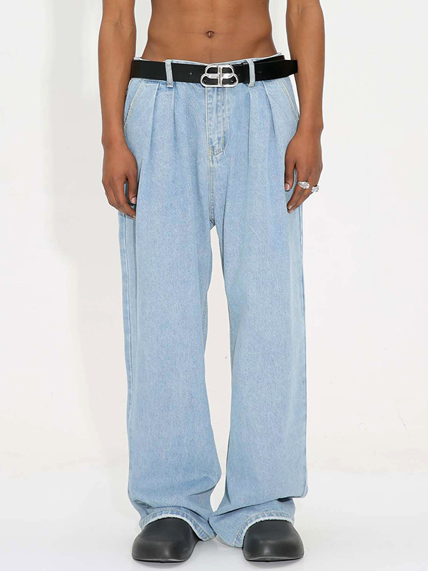 Men’s Fit Semi-Elastic Waist Straight-Leg Loose Jeans