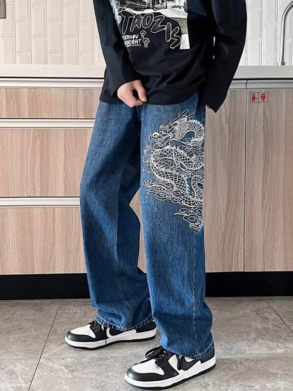 Men’s Dragon Embroidered Straight Leg Jeans