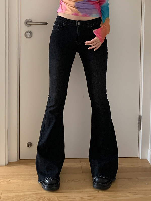 Vintage Low Rise Raw Edge Elastic Flare Jeans