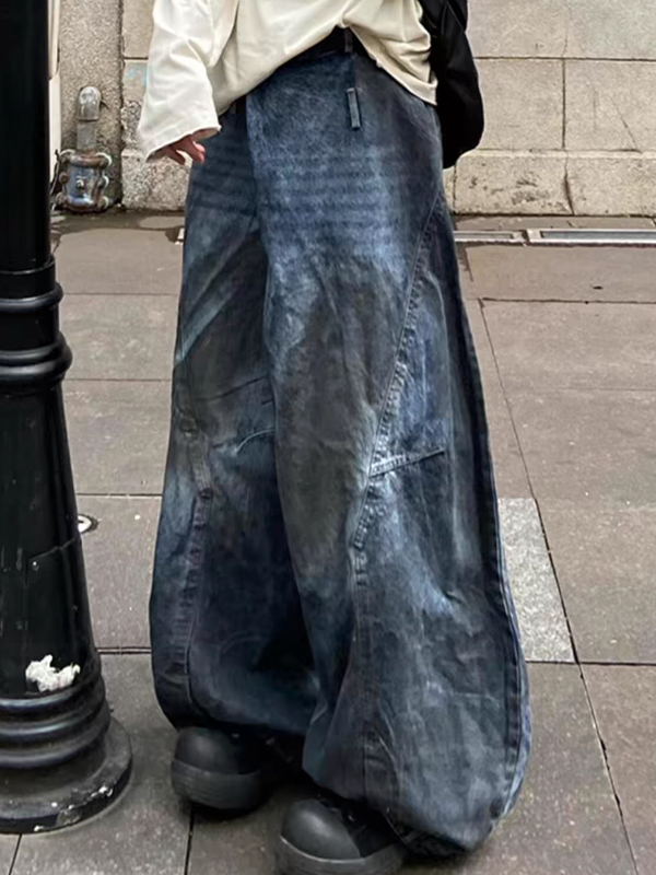 Men’s Camo Splash Ink Print Side Zip Up Loose Jeans