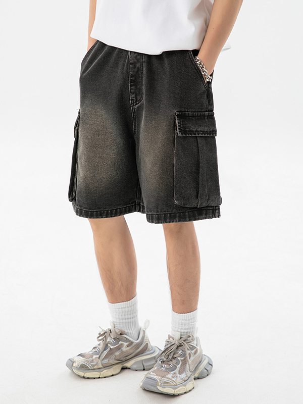 Men’s Wash Elastic Waist Drawstring Loose Jeans