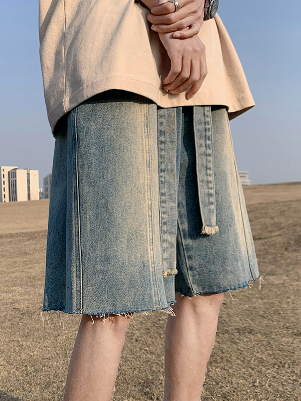 Men’s Wash Frayed Hem Tie Up Shorts