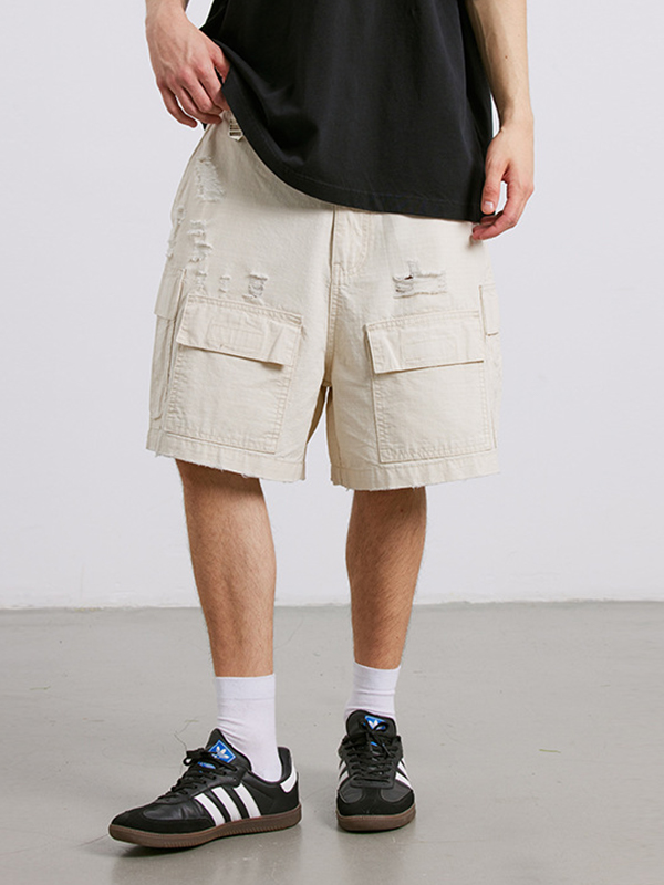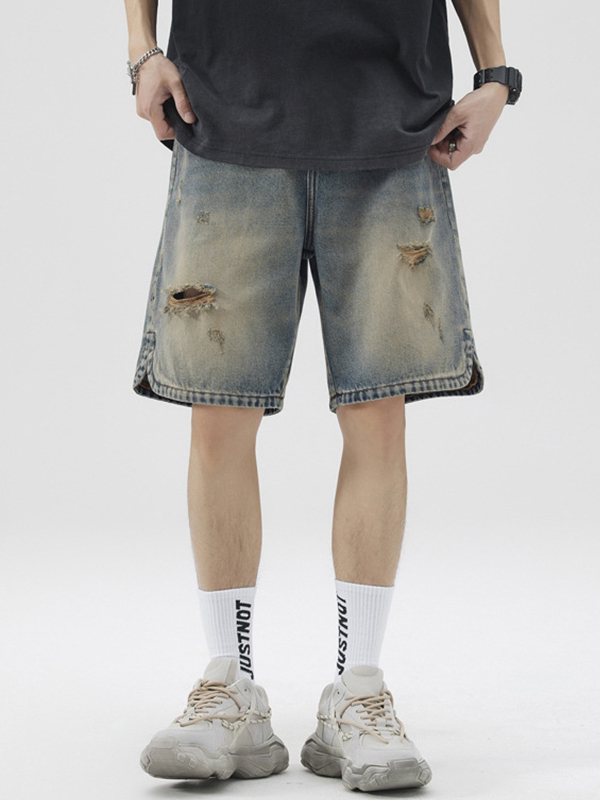 Men’S Vintage Washed Ripped Straight Shorts