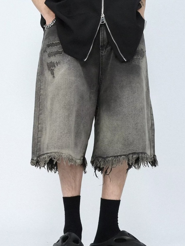 Men’s Distressed Ombre Ripped Raw Trim Shorts