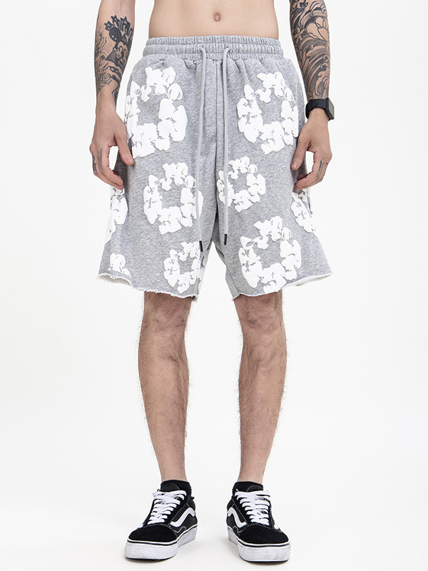 Men’S Washed Distressed Rhinestones Ripped Denim Shorts