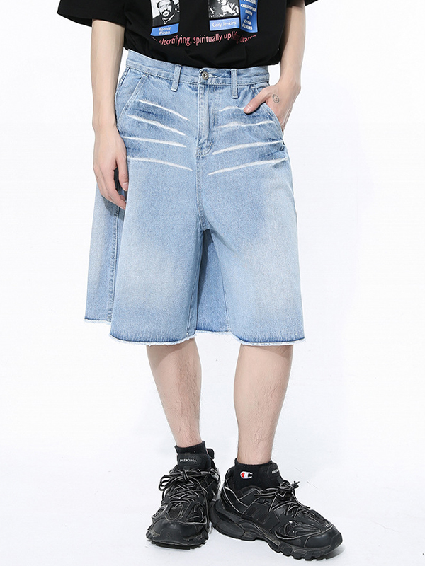 Men’S Vintage Washed Straight Loose Denim Shorts