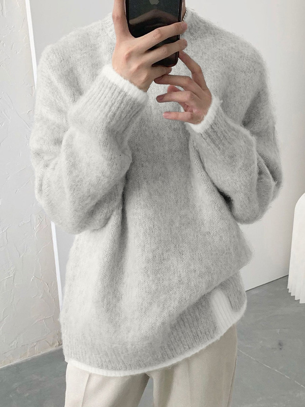 Men’s Fuzzy Fake Two Piece Splice Knit Sweater