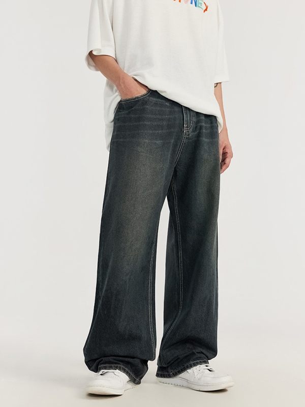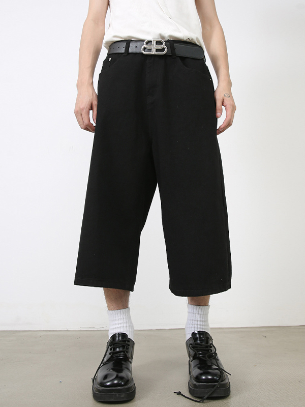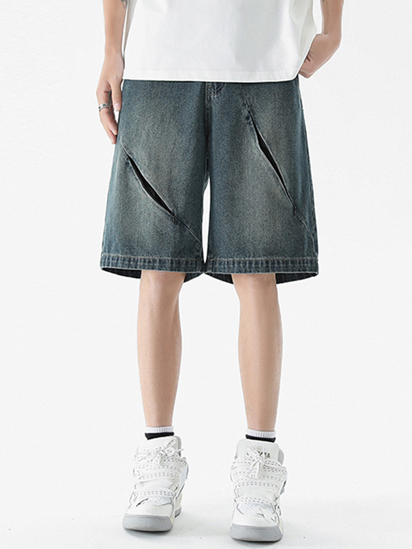 Men’S Retro Washed Wide Leg Straight Denim Shorts