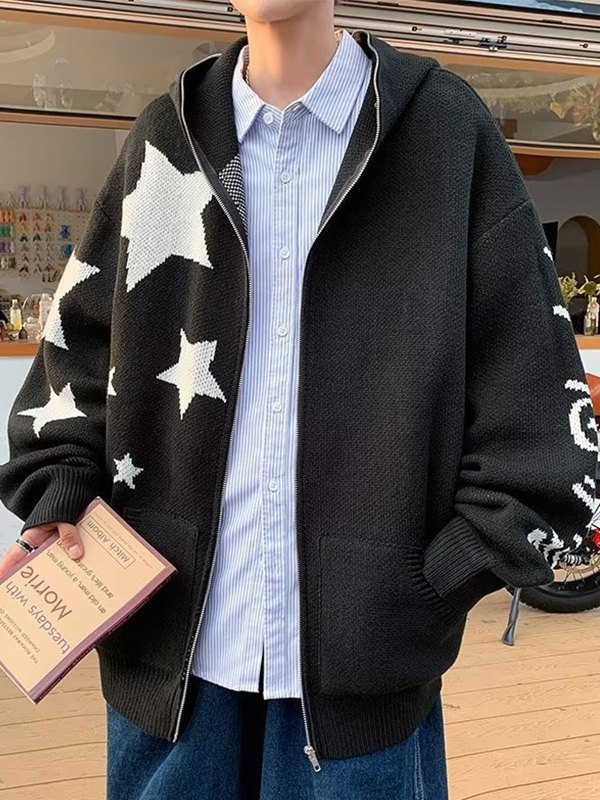 Men’s Star Jacquard Zip Up Hooded Cardigan