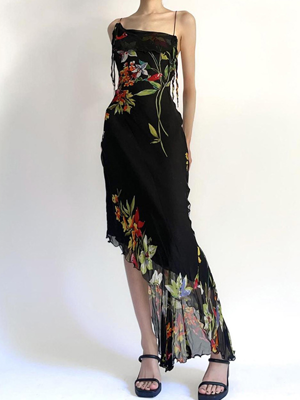 Irregular Print Halter Backless Wrap Hip Midi Dress
