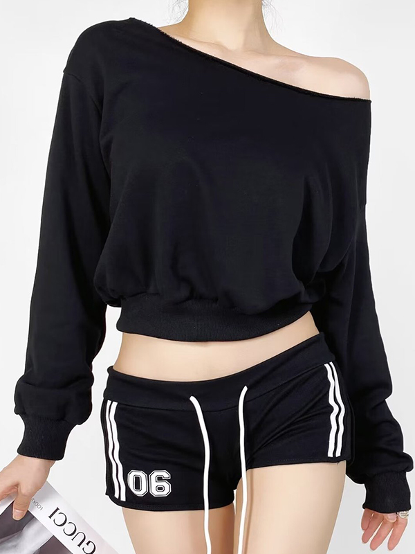 Off-The-Shoulder Long Sleeves With Bateau Neckline Sweatshirts