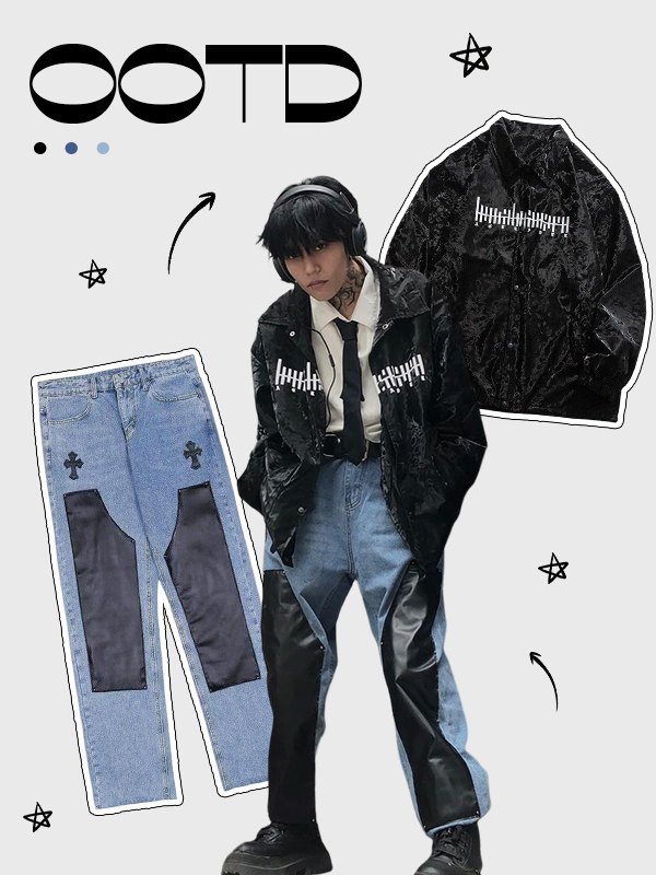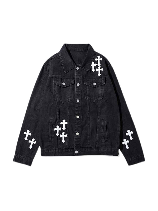 Men’s Vintage Embroidery Lapel Neck Splice Jacket