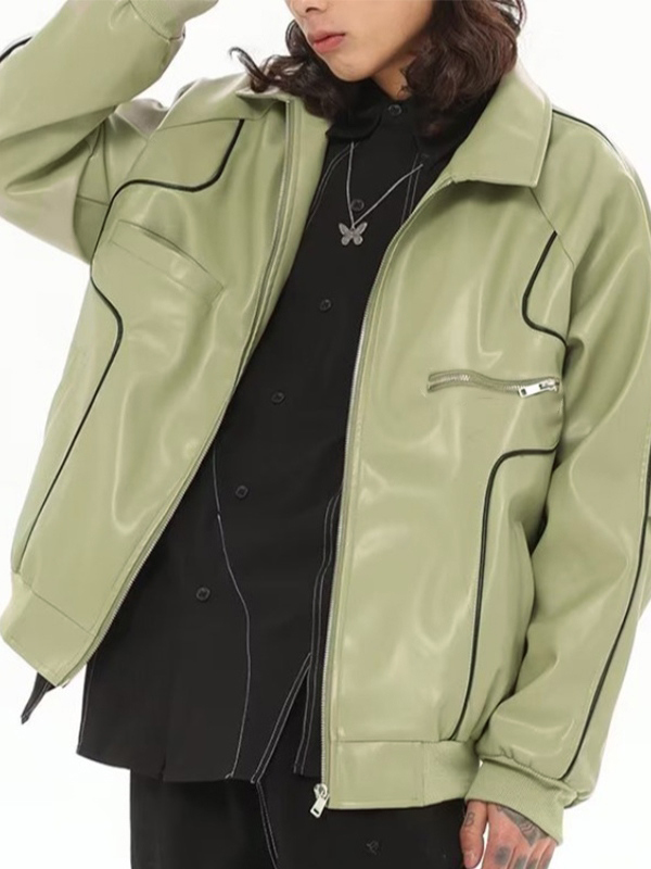 Men’s Vintage Flap Pocket Lapel Neck Leather Motorcycle Jacket