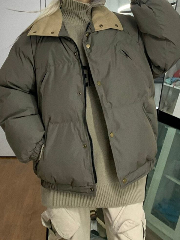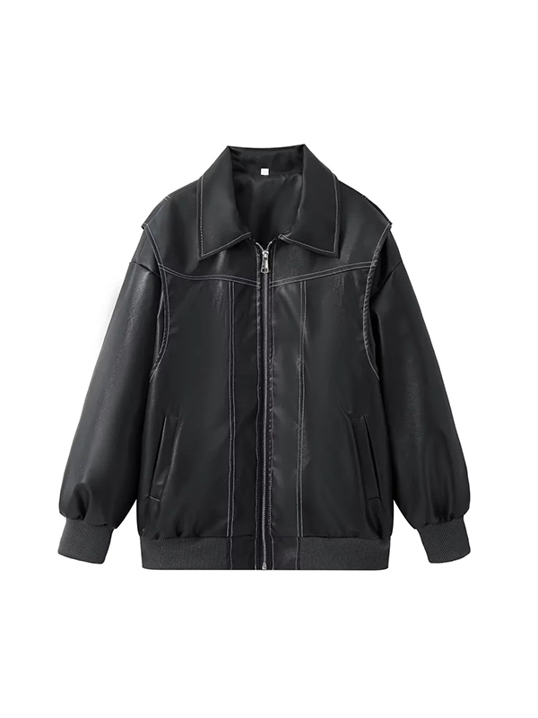 Motorcycle Contrast Color Slim Fit Crew Neck Jacket