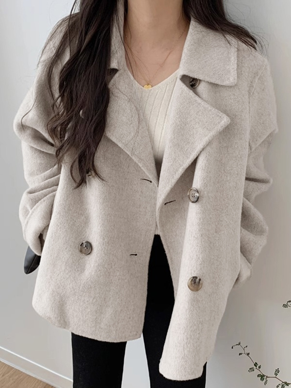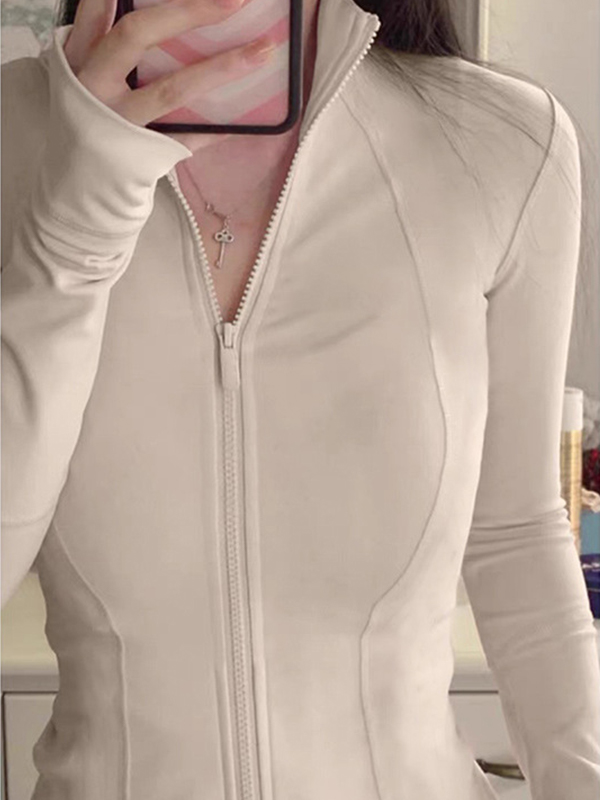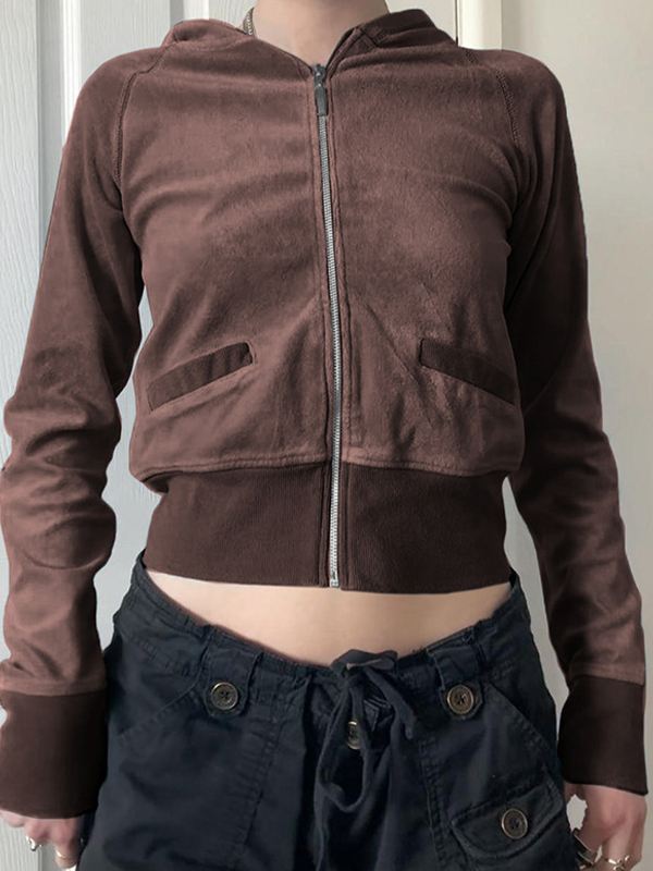 Vintage Solid Star Badge Lapel Neck Zip Up Jacket