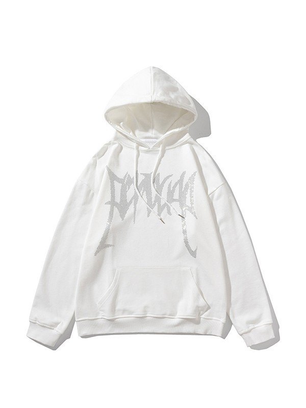 Men’s Hip Pop Letter Spider Web Print Oversized Hoodie