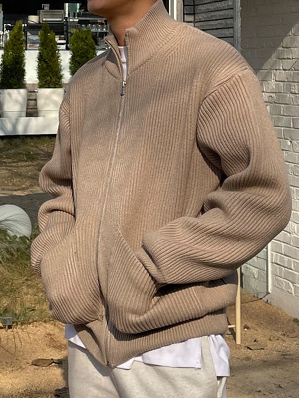 Men’s Solid Dual Pocket Zip Up Sweater