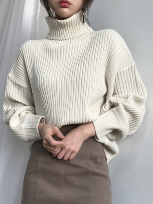 Solid Color High Collar Loose Lazy Style Sweater