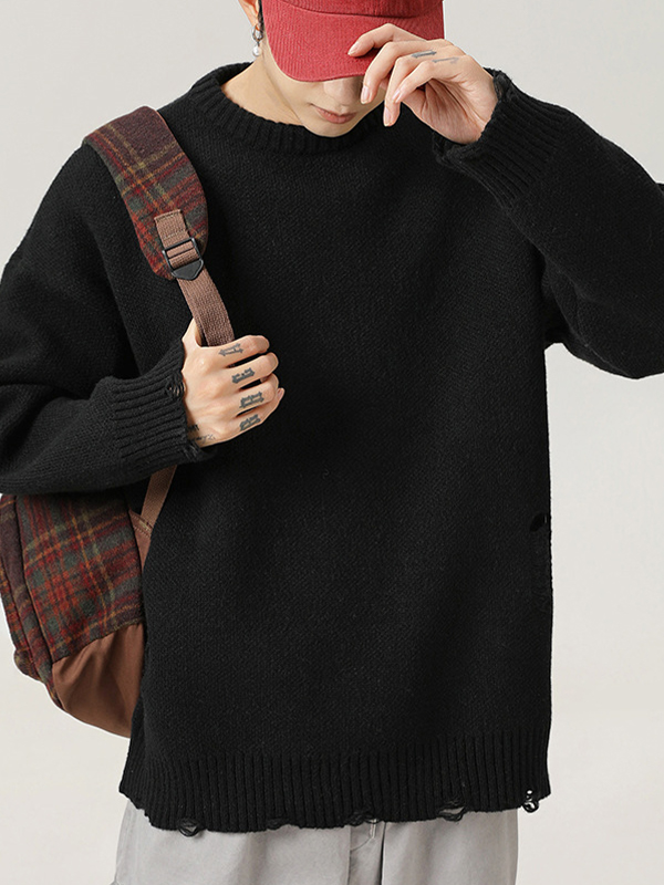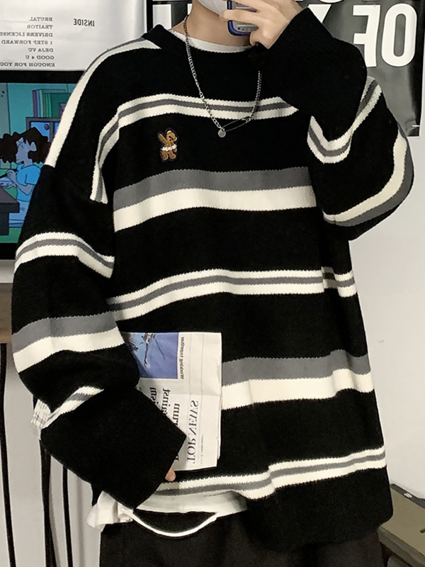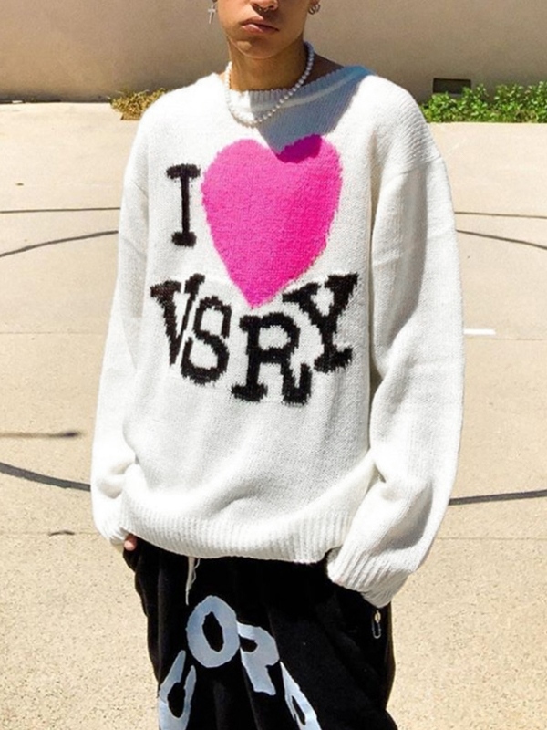 Men’s Letter Heart Jacquard Crew Neck Knit Sweater