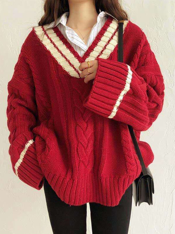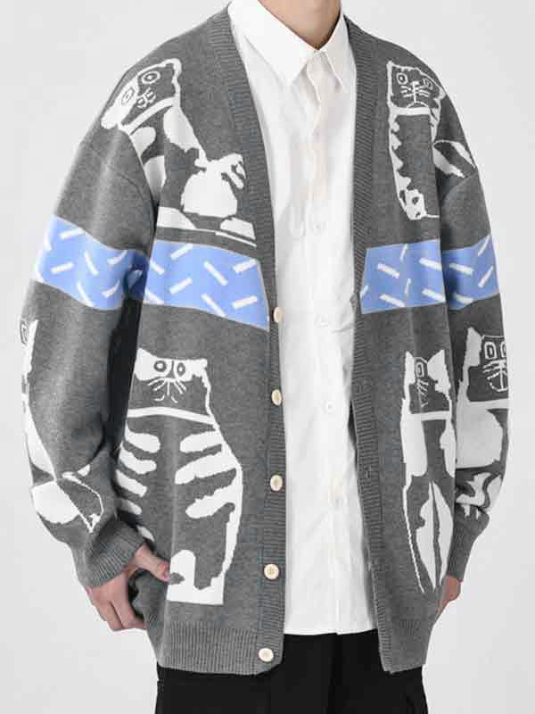 Men’s Vintage Cross Letter Print Oversized Sweater