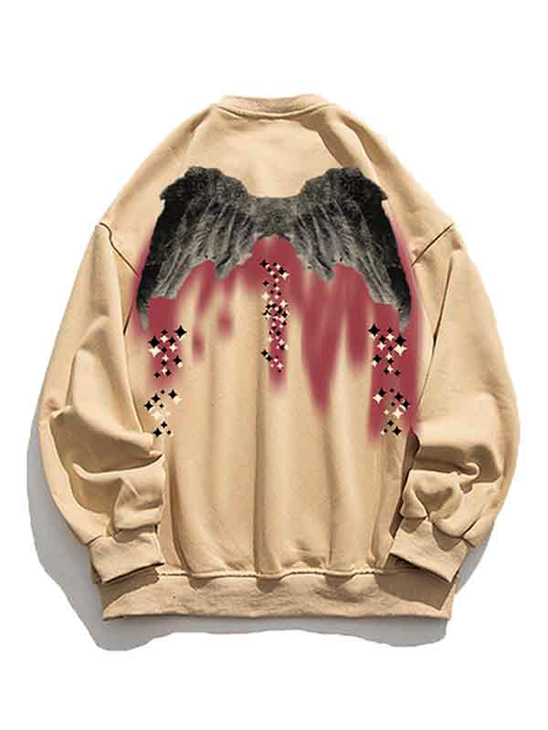Fake Two Piece Hole Design Chain Loose Dark Print Sweatshirt