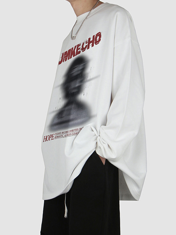 Men’s Street Blurred Portrait Print Wash Sweatshirt