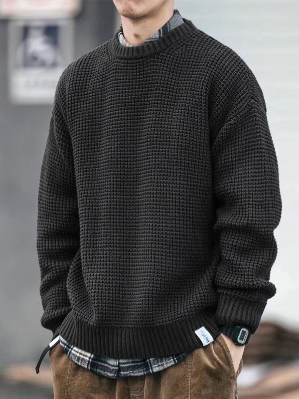 Men’s Solid Color Waffle Loose Sweater
