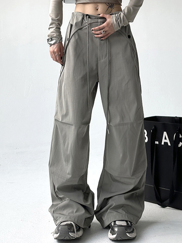 Solid Color Parachute Cargo Pants