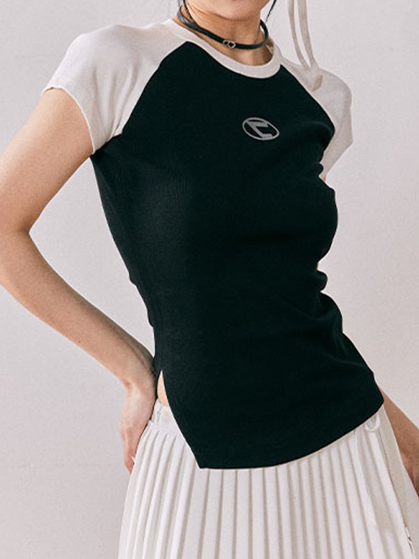 Print Raglan Slit Short Sleeve Tee