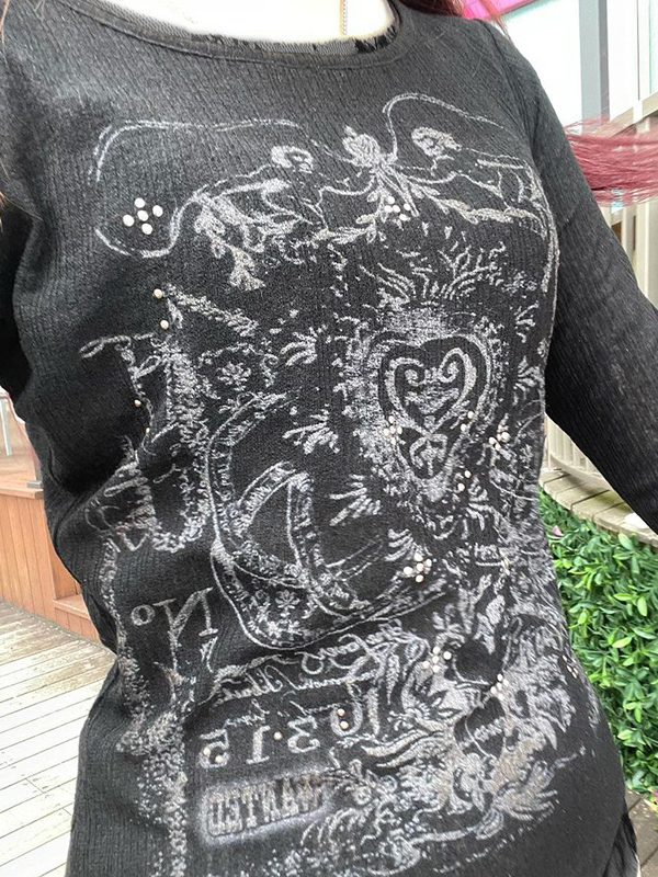 Solid Color Rib Lace Trim Slim Long Sleeve Knit