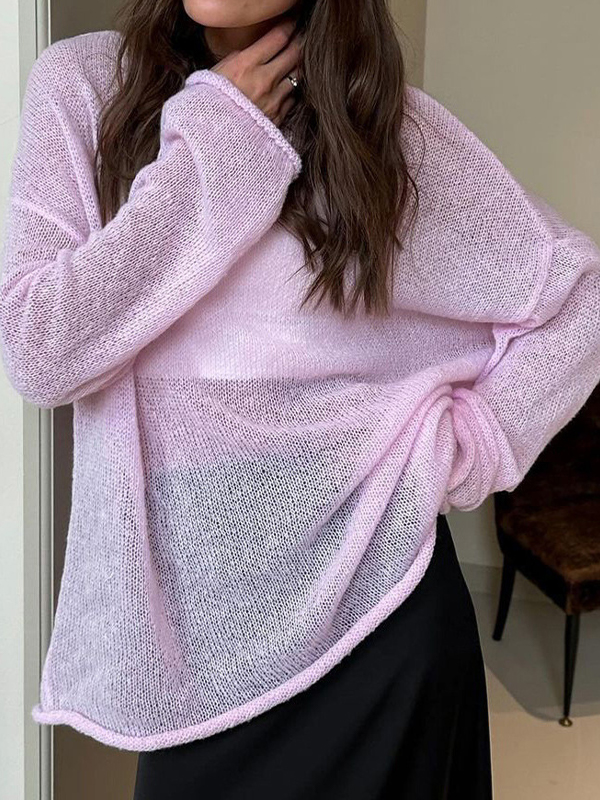 Plain Crewneck Casual Thin Long Sleeve Knits