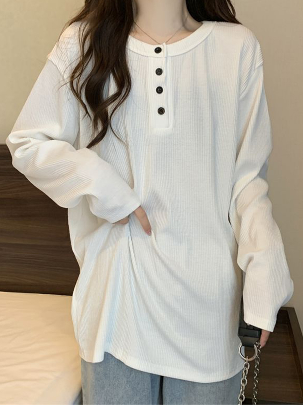 Solid Breasted Rib Baggy Long Sleeve Knit