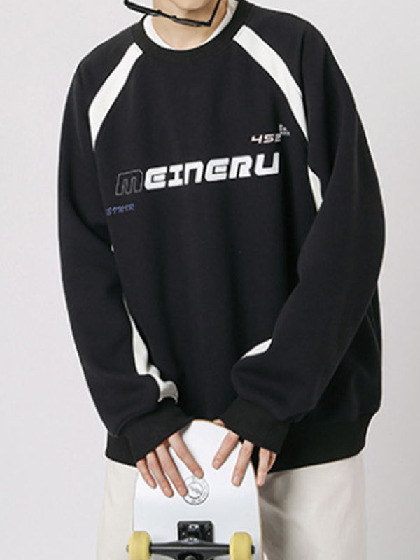 Men’s Vintage Print Patchwork Design Long Sleeve Tee