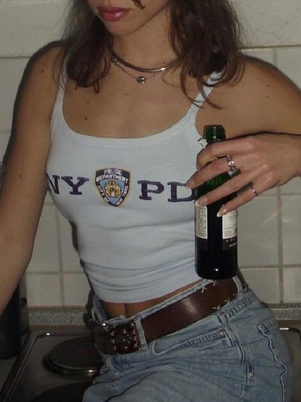 Retro Letter Print Loose Casual Tank Top