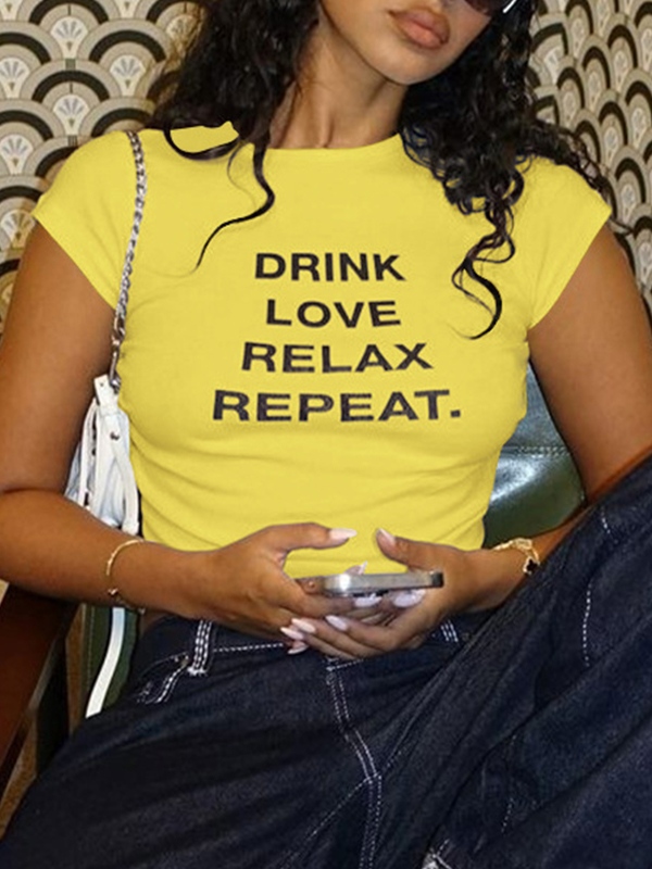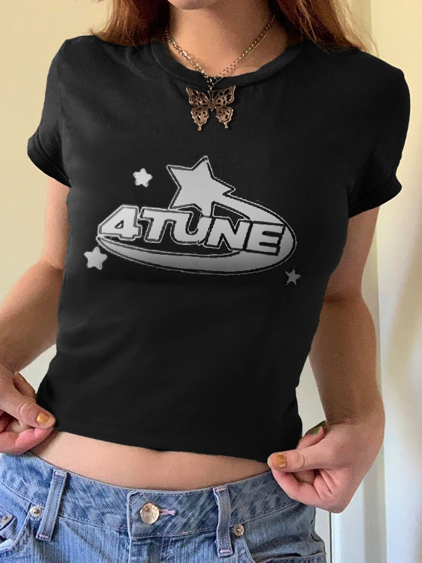 Letter Rhinestone Print Pullover Slim Short Sleeve Tee