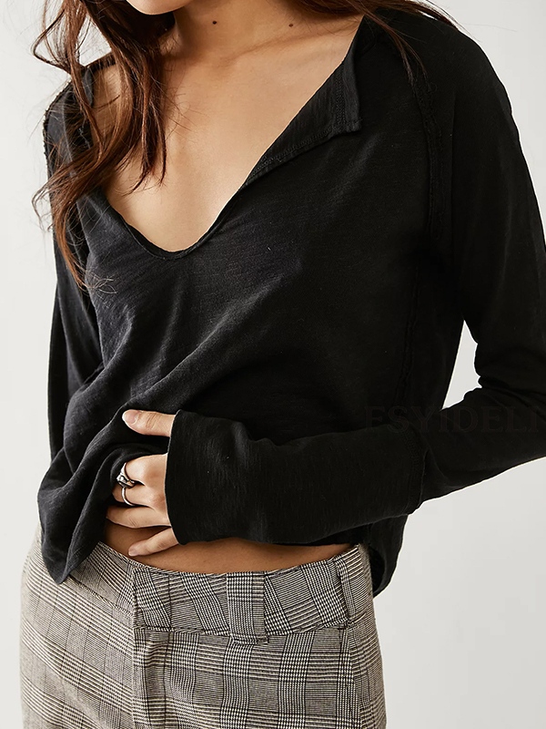 Solid Notch Neck Long Sleeve Tee