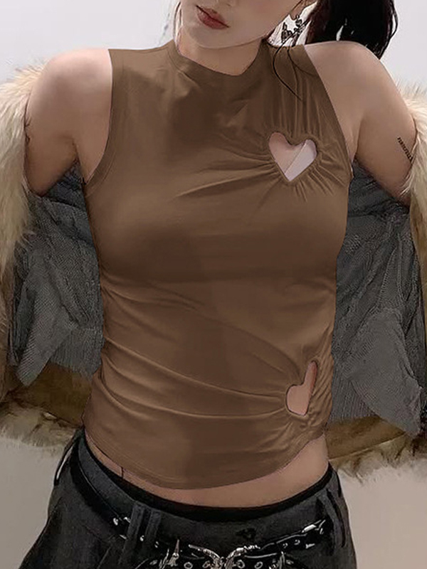 Heart-Shaped Openwork Irregular Pleated Tank Top